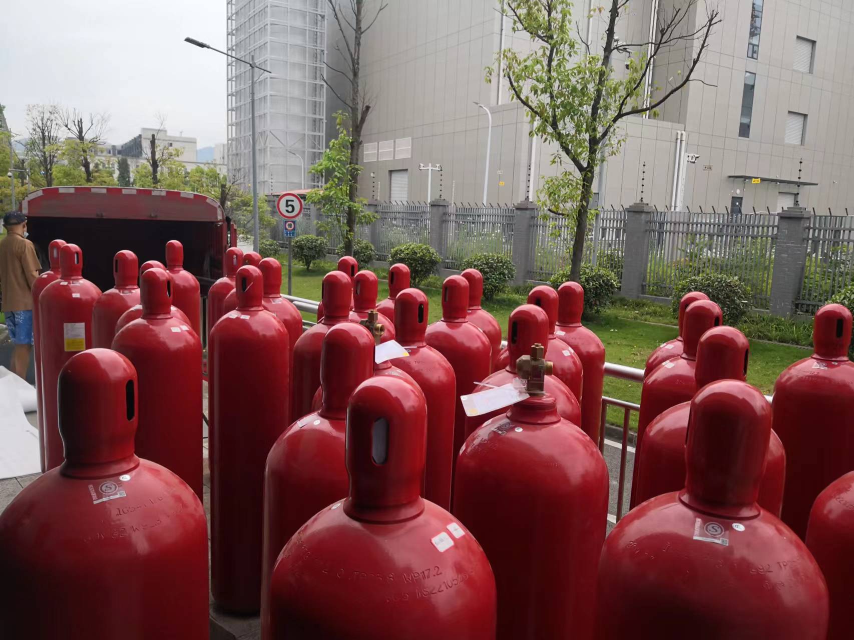 其中90L鋼瓶組為六組每組為6個氣瓶,120L鋼瓶組為4組,每組為4個鋼瓶。