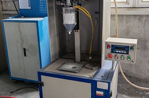 超細干粉灌裝機用于將超細干粉進行自動灌裝,全自動超細干粉滅火器灌裝機采用真空噴射技術。填充時,將滅火器器筒體內的空氣抽調產生負壓真空,并且干粉通過吸粉管被吸入滅火器中。由于吸粉管中的干粉在滅火器中受到真空吸力,因此干粉很快被吸入滅火器筒中。干粉受到粉塵流動時的離心力及在自身的重力的作用下沉淀到滅火器筒底部,帶有微小粉末的氣體通過真空吸氣軟管被吸到設備內的回粉過濾桶。回粉桶中的干粉無需人工清理,只需將吸粉管放入回粉桶中就可以將回粉桶中的干粉灌裝到滅火器中,解決了人工清理回粉的粉塵污染問題,再經過濾器過濾處理后,通過真空泵排出,本機過濾器采用旋風式重力粉塵處理方式過濾,濾芯采用進口鍍膜濾袋(孔徑只有0.1-2um)過濾效率高達99.99%以上,濾芯可長期使用無需更換。